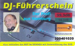 - Um den Sachkundenachweis zu erhalten, habe ich am 24.11.2004 in Stuttgart an diesem ersten Seminar teilgenommen und mit weiteren 178 Discjockey's die Prüfung bestanden und den DJ-Führerschein erhalten.